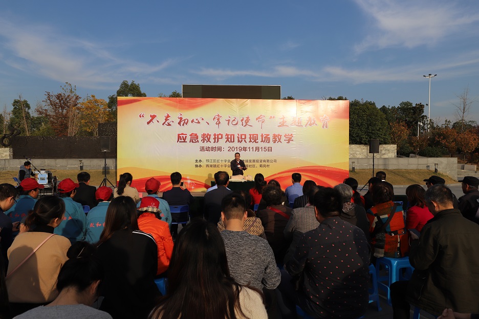 為深化應急救護知識宣傳普及工作,11月15日下午,“不忘初心、牢記使命”主題教育應急救護知識現場教學活動在蜀岡生態(tài)體育公園舉行。本次活動由邗江區(qū)紅十字會、維揚發(fā)投主辦,西湖鎮(zhèn)紅十字會、西湖花園社區(qū)、蜀崗村共同協(xié)辦。邗江區(qū)紅十字會常務副會長趙曉靜,維揚發(fā)投黨支部書記、董事長李兵,維揚發(fā)投副董事長、總經理劉迪平,維揚發(fā)投黨支部副書記、副總經理姜晉堯,西湖鎮(zhèn)紅十字會副會長李紅燈出席了本次活動。維揚發(fā)投全體工作人員及公司下轄各項目部、物業(yè)公司工作人員,西湖花園社區(qū)和蜀崗村黨員群眾參加了本次活動。 當前,全區(qū)“不忘初心、牢記使命”主題教育活動正在如火如荼地開展。如何做好事關群眾切身利益、影響改革發(fā)展大局的重要工作,是當前主題教育的重要內容。為切實增強廣大群眾的安全意識,提高應對意外傷害的能力,讓廣大群眾了解掌握應急救護的基本知識和技能,是本次現場教學活動的初衷。 維揚發(fā)投黨支部書記、董事長李兵強調,蜀岡生態(tài)體育公園是周邊群眾游玩、鍛煉的重要場所。通過本次“不忘初心、牢記使命”主題教育應急救護知識現場教學活動,在廣大群眾中普及應急救護知識,讓群眾掌握自救互救技能,這是加強公共安全建設、提高全社會應急救援能力的一項重要舉措。